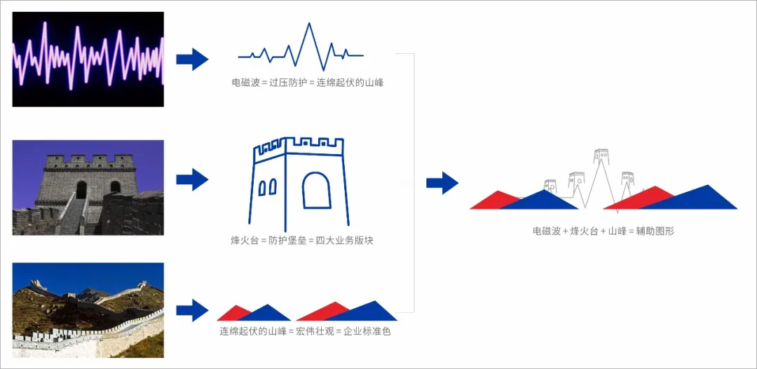 輔助圖形以長城為主元素+電磁波形+山峰組合而成,形成一套完善的防御系統(tǒng),堅(jiān)不可摧的長城完美詮釋檳城電子的過壓防護(hù)理念和愿景,為檳城電子的產(chǎn)品代言。